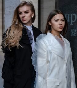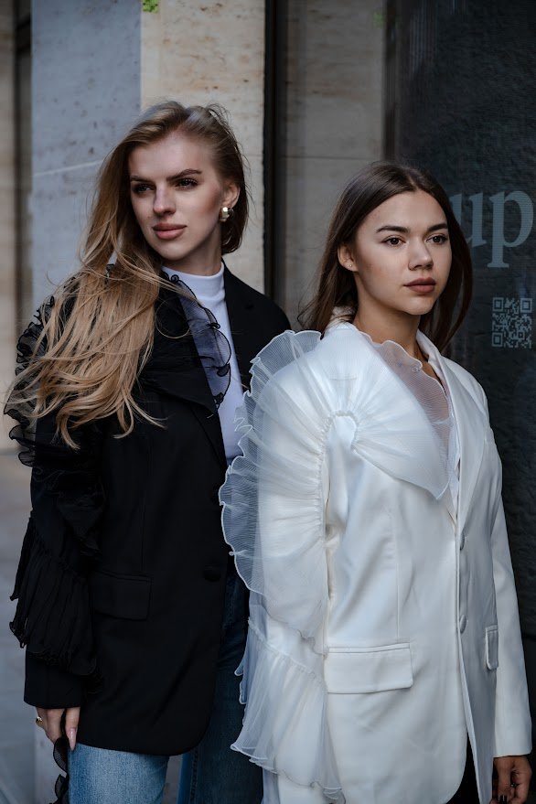 A bold yet graceful blazer where classic tailoring meets artistry. The clean cut is enhanced with striking tulle details that resemble flower petals in motion. This unique touch transforms a timeless piece into a true fashion statement, adding femininity and a touch of theatrical elegance.“Bloom Motion” is the choice for women who are not afraid to be in the spotlight.